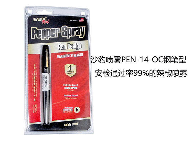 品牌:SABRE沙豹产品尺寸:14.5cm*1.5cm喷射类型:喷雾型喷射次数:15次产品重量:约60克产品产地:美国