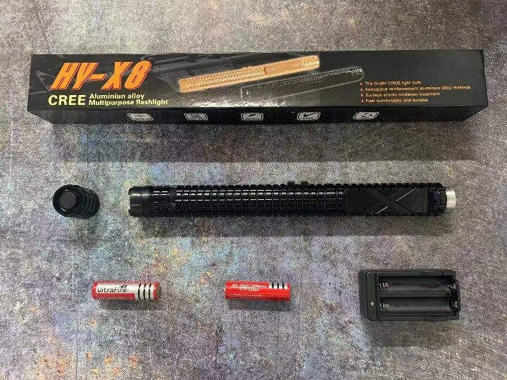 黑鹰X8设计新颖全合金铸造,耐敲击.双18650大功率锂电池供电,使电击功率直接加倍,威力强大,照明采用进口CREE强光灯泡是目前电击棍里面照明距离最远光线最强的合金电击棍! 本款威力强大,是工厂保卫部门以及私家车主不可或缺的贴身防卫器材!
