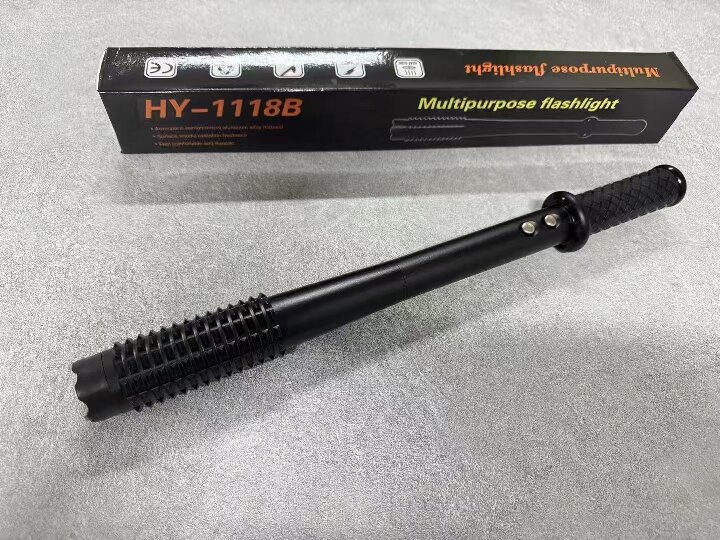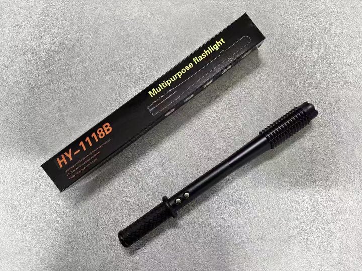 1118b棍身中间部位有两个圆形按钮,靠上面的是电击按钮,靠下面的是档位切换按钮。