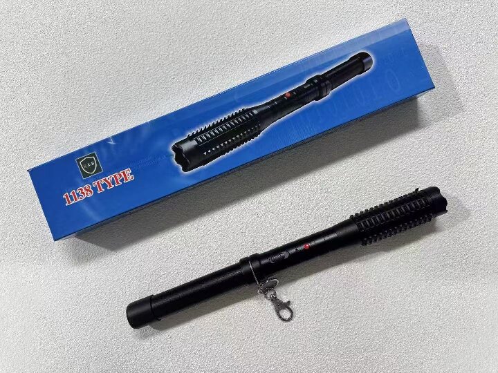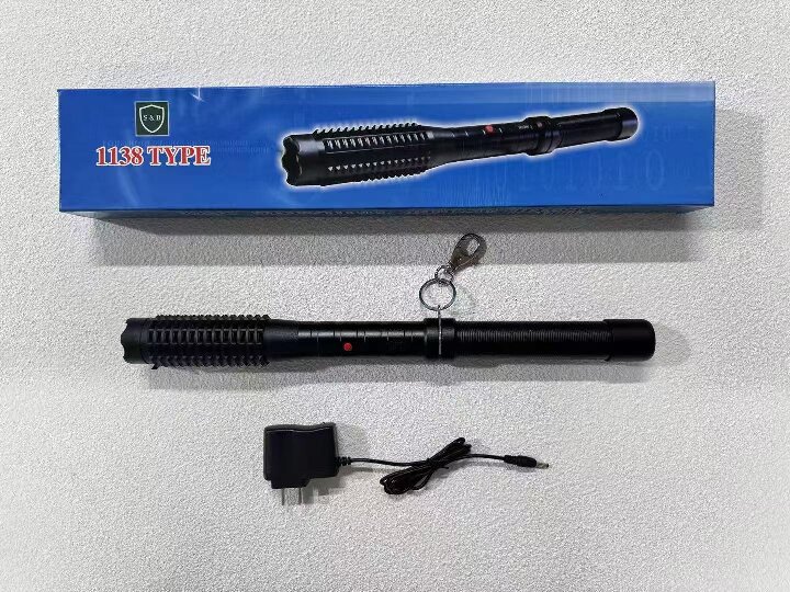 1138 狼牙棒电棍,专为注重安全防护的人士设计。其独特的狼牙棒造型,兼具威慑力与实用性,是您出行、居家的可靠防护工具。 关于大家关心的产品参数,1138 电棍的具体尺寸为37厘米,方便携带且握持舒适,无论是日常随身携带,还是放置于车内、家中,都不占过多空间。