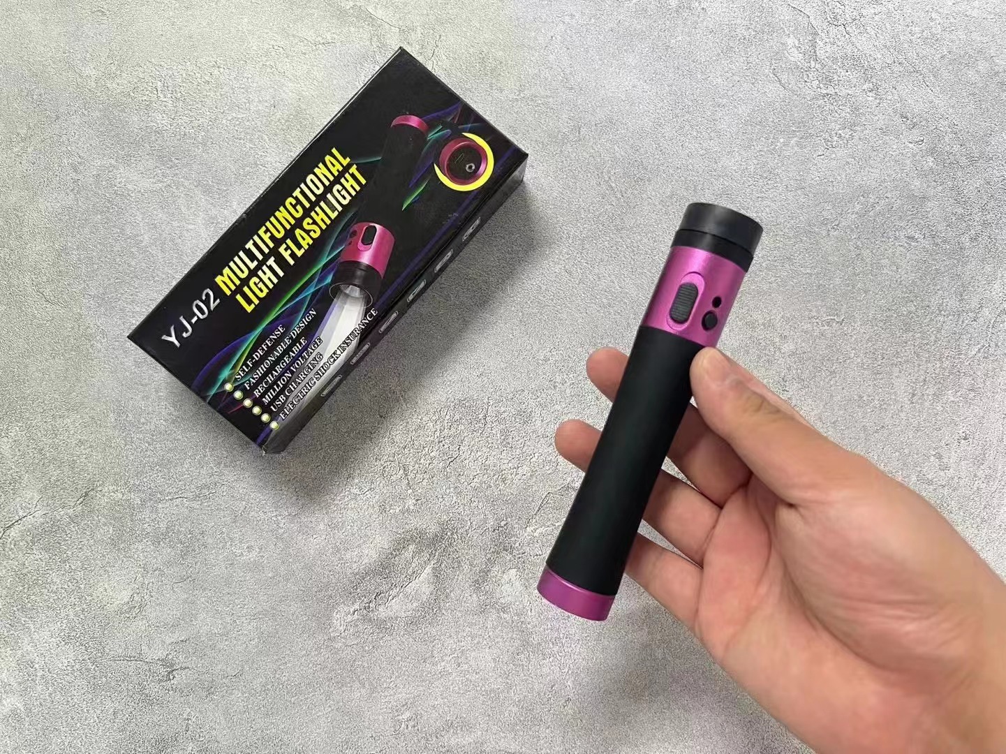 YJ-02雷神女士专用电击棍威力强外观精美适合女士防狼防身使用,体积小巧便于随身携带,尾部插销设计普通手电筒模式和电击棍模式随意切换,可以通过地铁安检!尾部带手绳,防止使用时被坏人抢夺,非常实用!