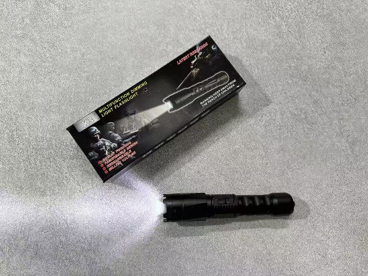 配备 三档调焦照明(强光/弱光/爆闪),亮度达300流明,兼具震慑与应急照明功能。