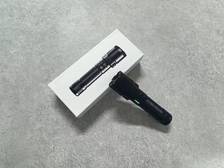 配独立手绳和手电套,USB充电线,自带电量显示。