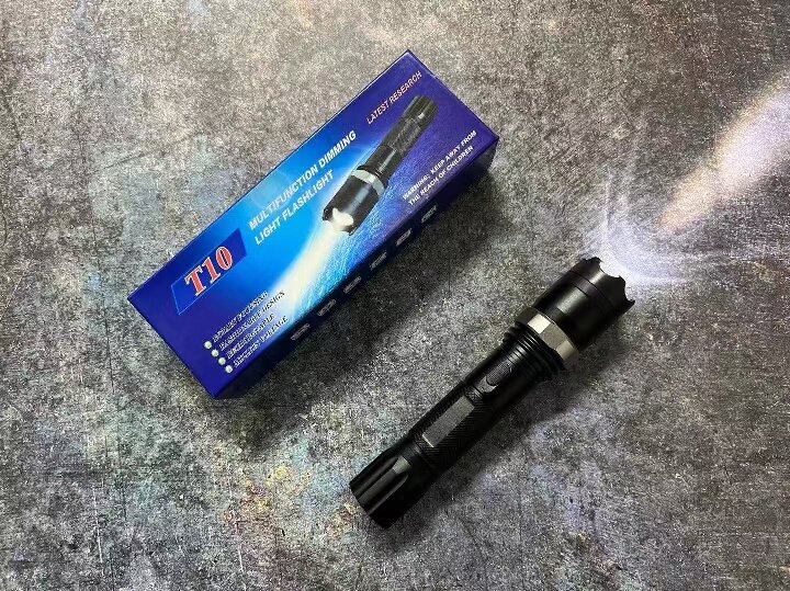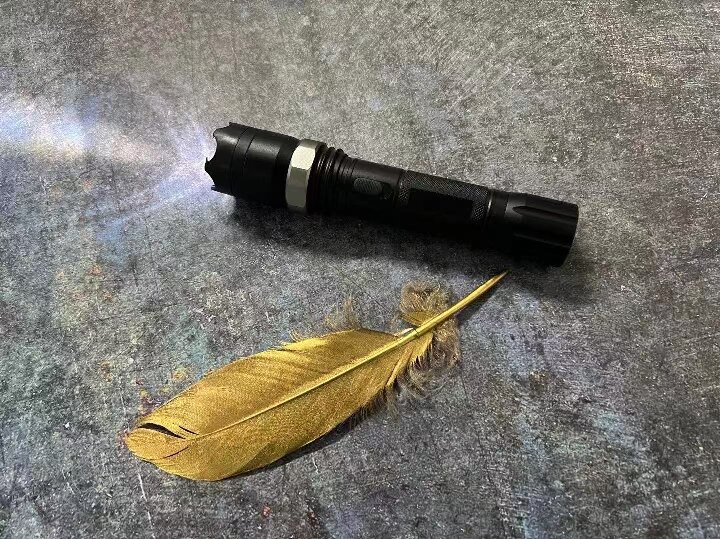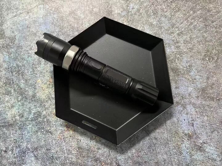 2、黑鹰T10手电筒电击器设计有无极变焦功能,顺着顶部扭动,即可近距离放大照射面积,也可远距离高亮清晰照射。