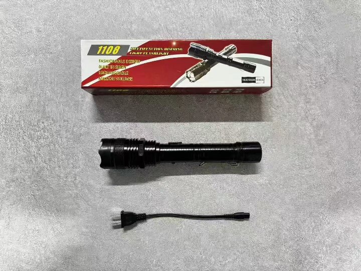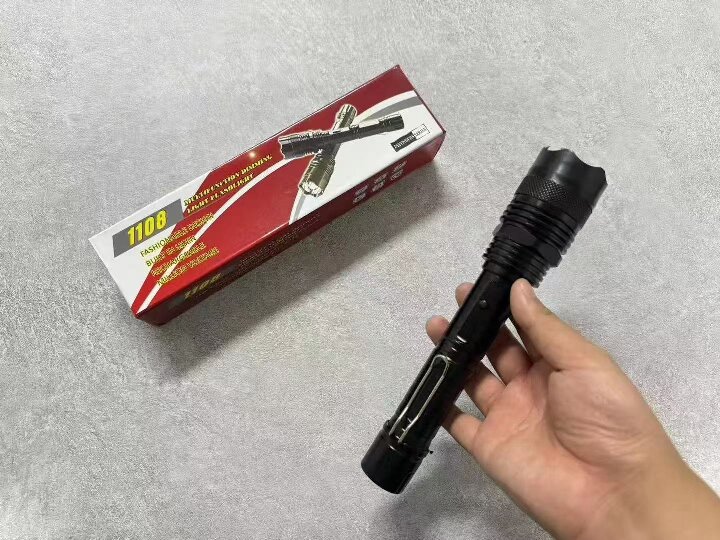 注意事项:以电击人体四肢为宜,电击时间一般不超过2-5秒,歹徒丧失攻击及反抗能力,就不要再电击,以免发生意外。 严禁电击人体头部、心脏等重要脏器部位;请勿触有心脏病或装有心脏起博器者。 严禁对老人、儿童、妇女及体弱者使用。 能电晕或者电死人吗?电击棍是一种非致命性防身工具,旨在通过施加电击来暂时瘫痪攻击者,而不是造成长期伤害或死亡。电击棍(如1108型号)通常设计用来对攻击者施加足够的电压,使其经历疼痛和肌肉控制丧失,从而允许使用者逃脱危险。然而,它们的效果因人而异,取决于多种因素,包括被电击者的身体状况、电击的时间长度和电击的部位。 在某些情况下,电击棍可能会导致被电击者晕倒,尤其是如果电击时间过长或者受攻击者的身体状况不佳。但是,电击棍的标准使用通常不会导致死亡。尽管如此,如果不正当使用(比如对一个有心脏疾病的人使用或在敏感部位长时间电击),电击棍有可能引起致命的后果,包括心脏骤停。 1108电棒充电口分正负极吗?1108电棒充电口采用的是直流DC型充电口,无需分正负极,直接插入即可充电。 黑鹰1108电击棍我充不进电了怎么办,坏了怎么维修?首先要排除是不是电击棍长期不用充电口被脏污堵塞或者氧化不通电,可以用酒精擦拭清除脏污即可。如果进行上述操作后还是充不进电,就要怀疑是不是充电器故障或者电击棍本身故障,如果是的话切勿自行修理,赶紧联系厂家进行售后。