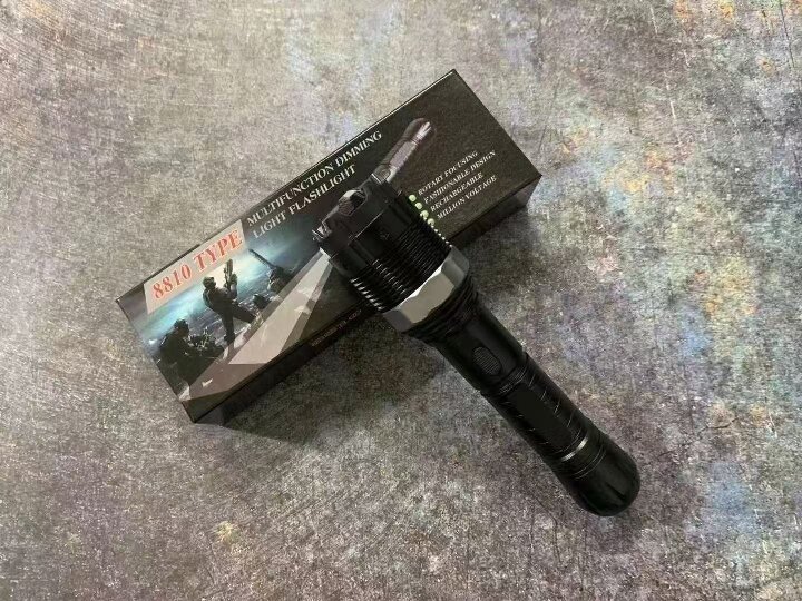 1、尾部总开关打开,中间长方形开关往前推,是照明档位,反复几次可以强光、弱光、爆闪,旋转调焦环可以聚光。