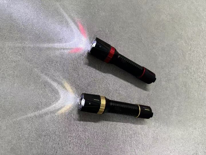 功能测试:正品电击时火花强烈、声音清脆,照明支持强光、弱光、爆闪三档,且可无级调焦。