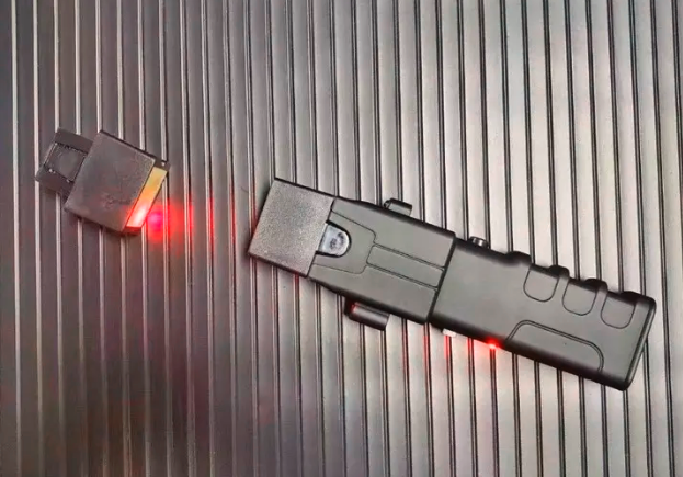 【尺寸】长度16厘米、宽度3厘米、厚度5厘米,头部厚度6厘米 【材质】ABC硬塑 【峰值电压】50000V 【输出电流】有效电流处于低风险范围,通常在 1.9 至 4 毫安(mA)之间。这一电流强度通过高频脉冲(约 19 次 / 秒)传输,旨在干扰神经肌肉信号,引发全身性肌肉痉挛(即神经肌肉失能,NMI),而非造成组织损伤。【灯光】一档强光、激光瞄准 【电池】使用两节 CR123 锂电池,可支持约 50 次 30 秒电击或 1 年待机,避免过度放电【重量】260g 【配件】主体*1、充电器*1、腰套*1、射击头*2
